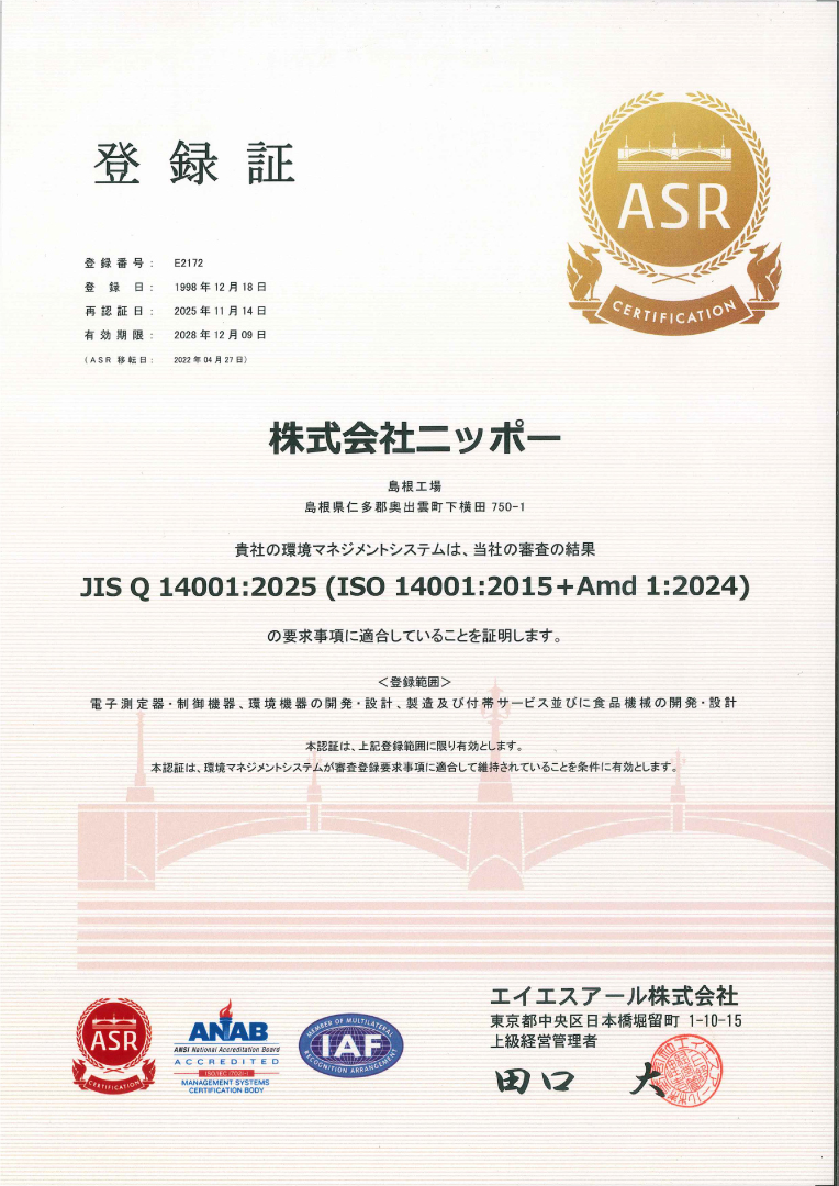 | 平成8年 (1996) | IS09001認証取得(2月) |
