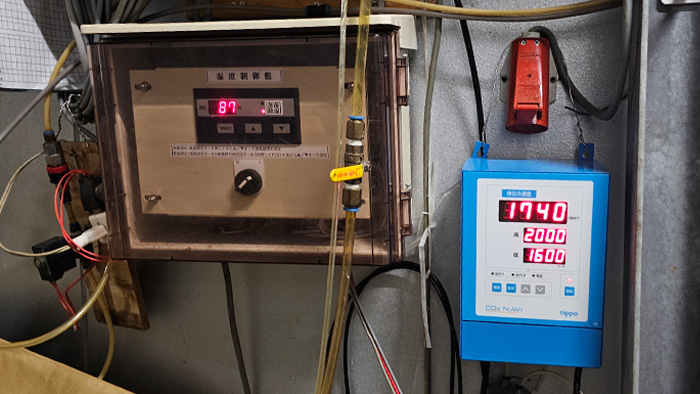 温度調節器、湿度調節器、CO₂コントローラ、加湿装置を導入しています。