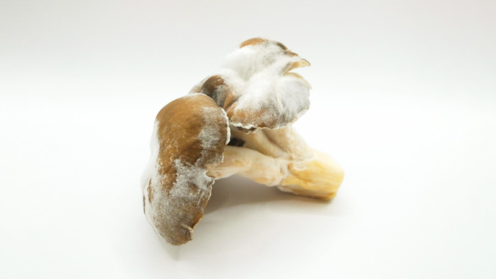 ぶなしめじや菌床しいたけ、エリンギなどは、温度や湿度が合わない状態が続くと色がくすんだり、白カビと誤解されることがある気中菌糸が発生することがあります。