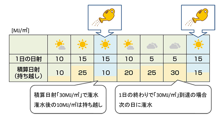 ◇設定例:30MJ/㎡ごとに潅水する